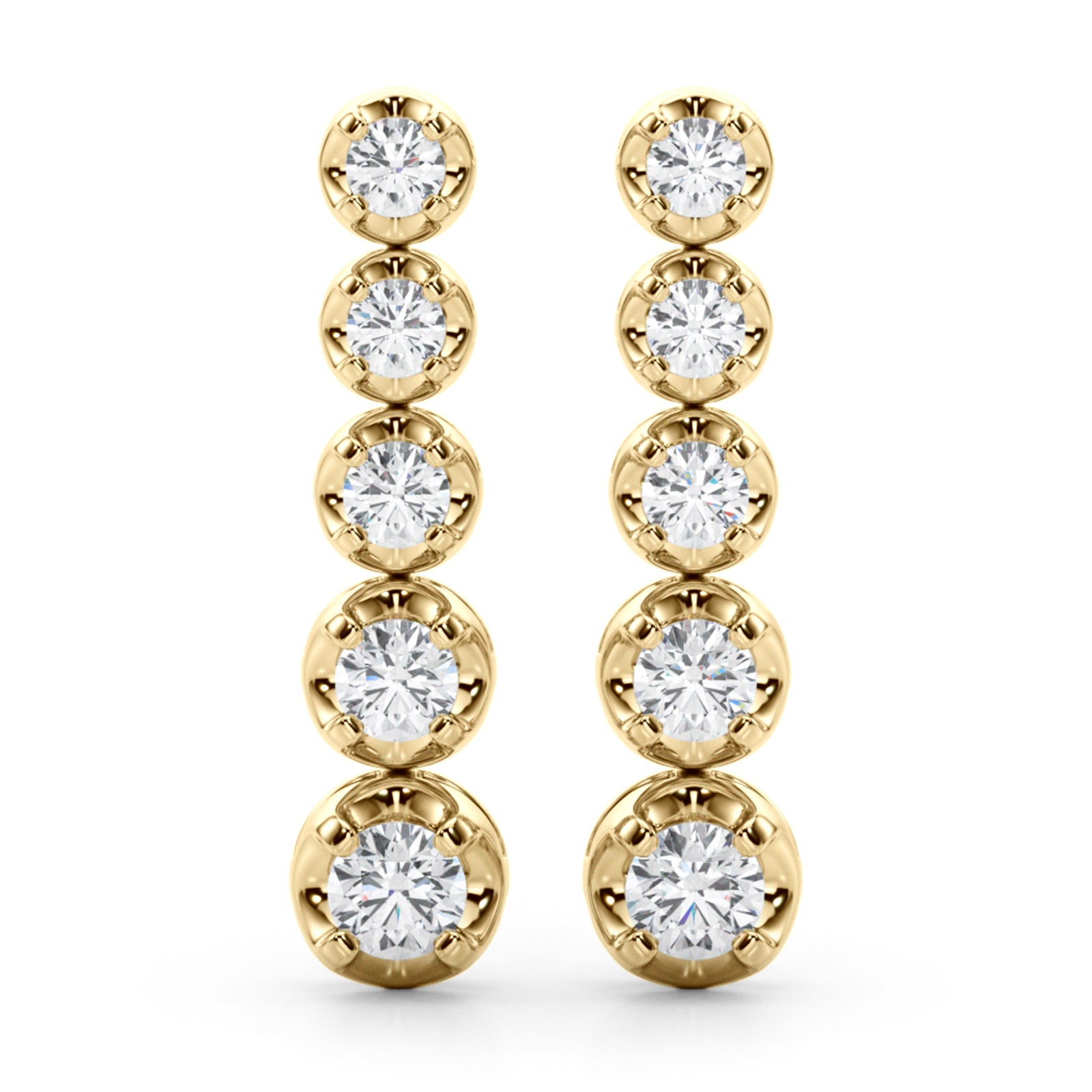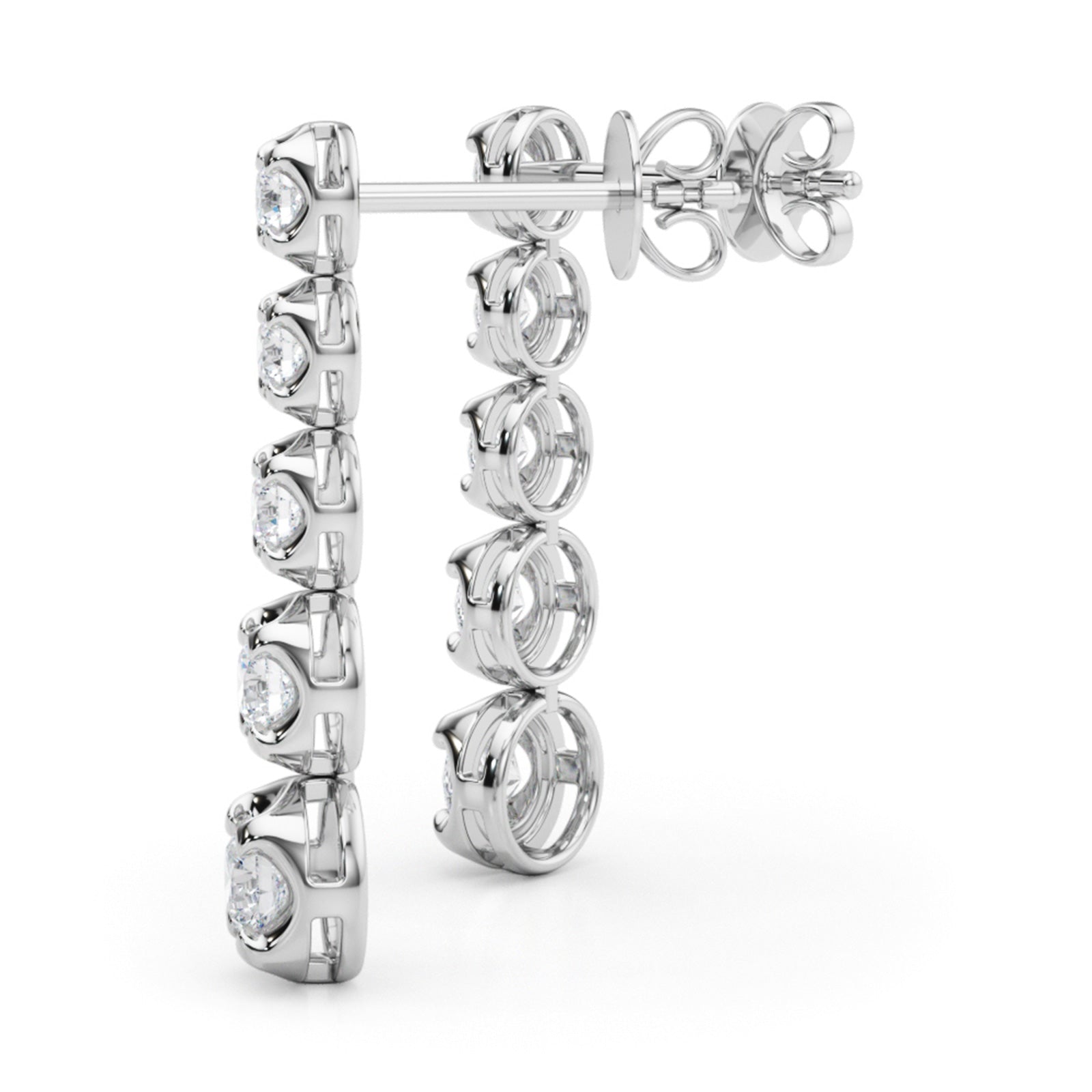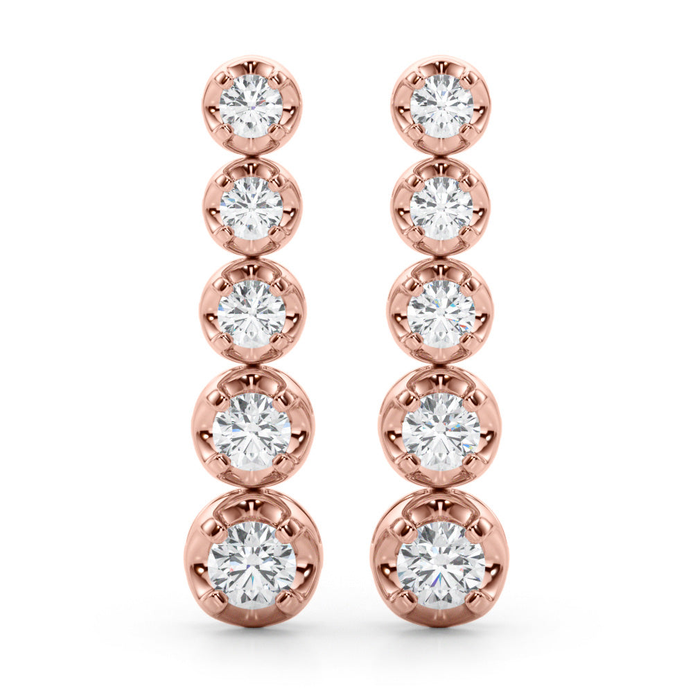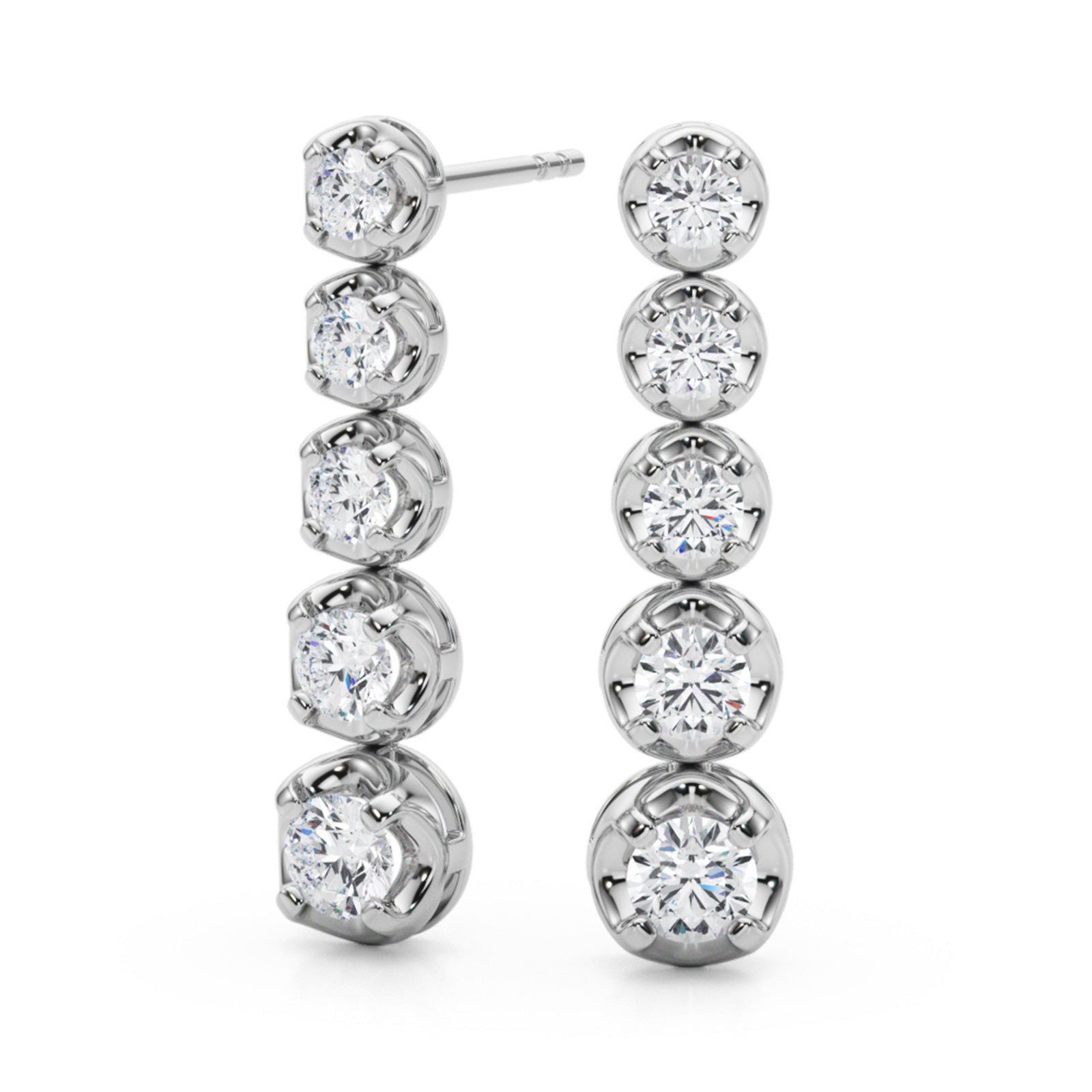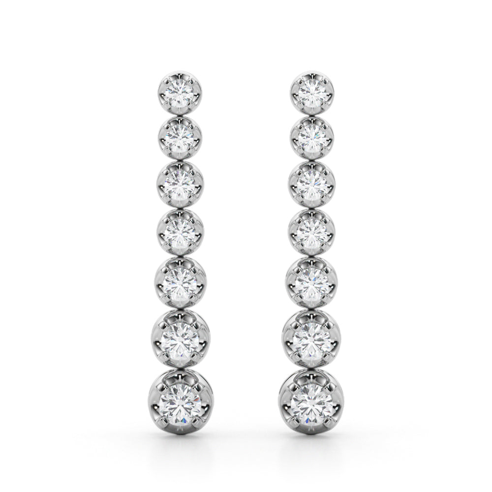 Choose 0.42 CT with 5 diamonds or 0.70 CT with 7 diamonds per earring for subtle elegance or enhanced length and sparkle.